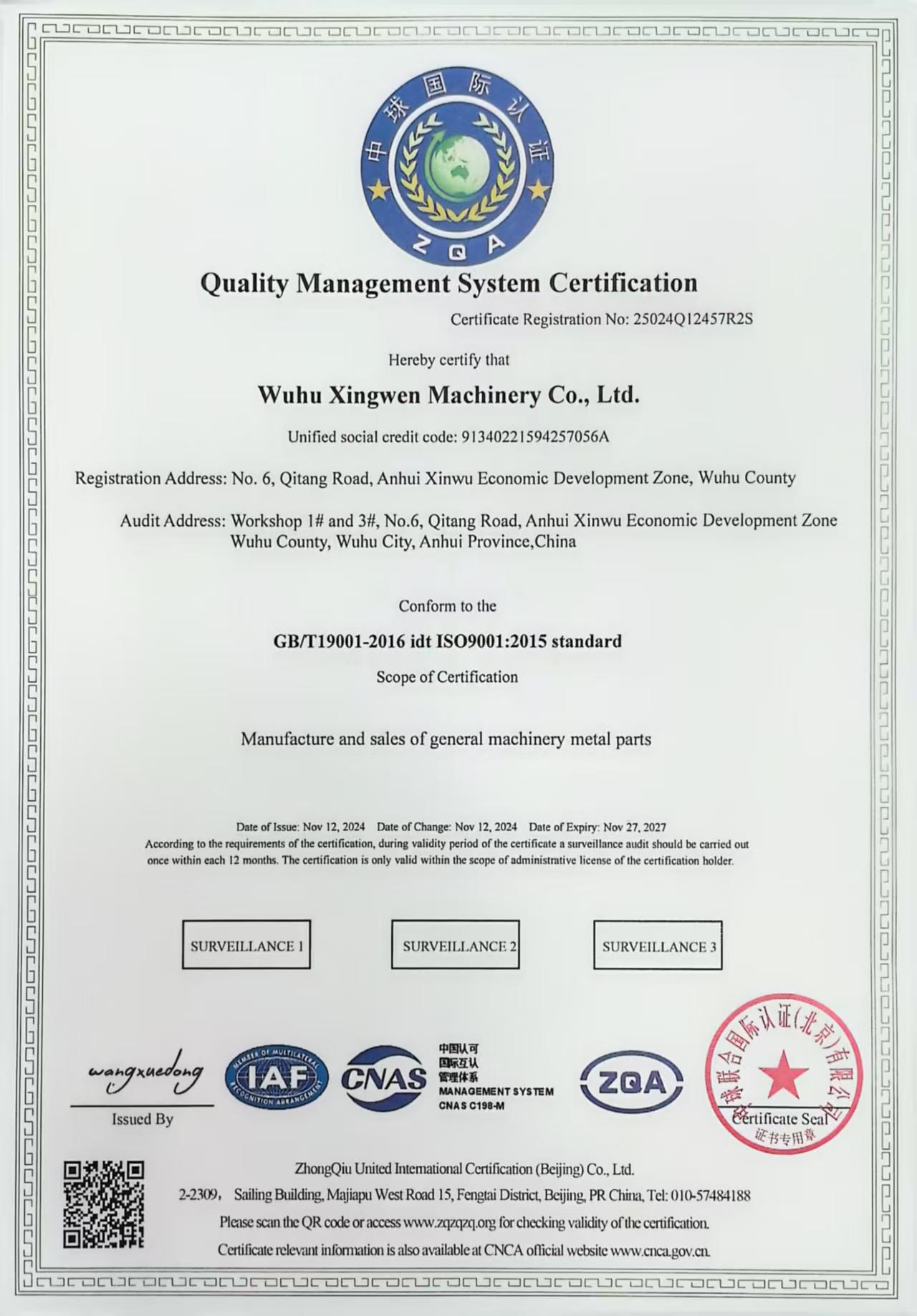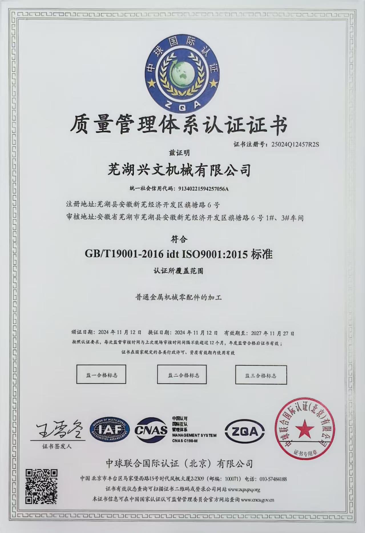 质量管理体系证书